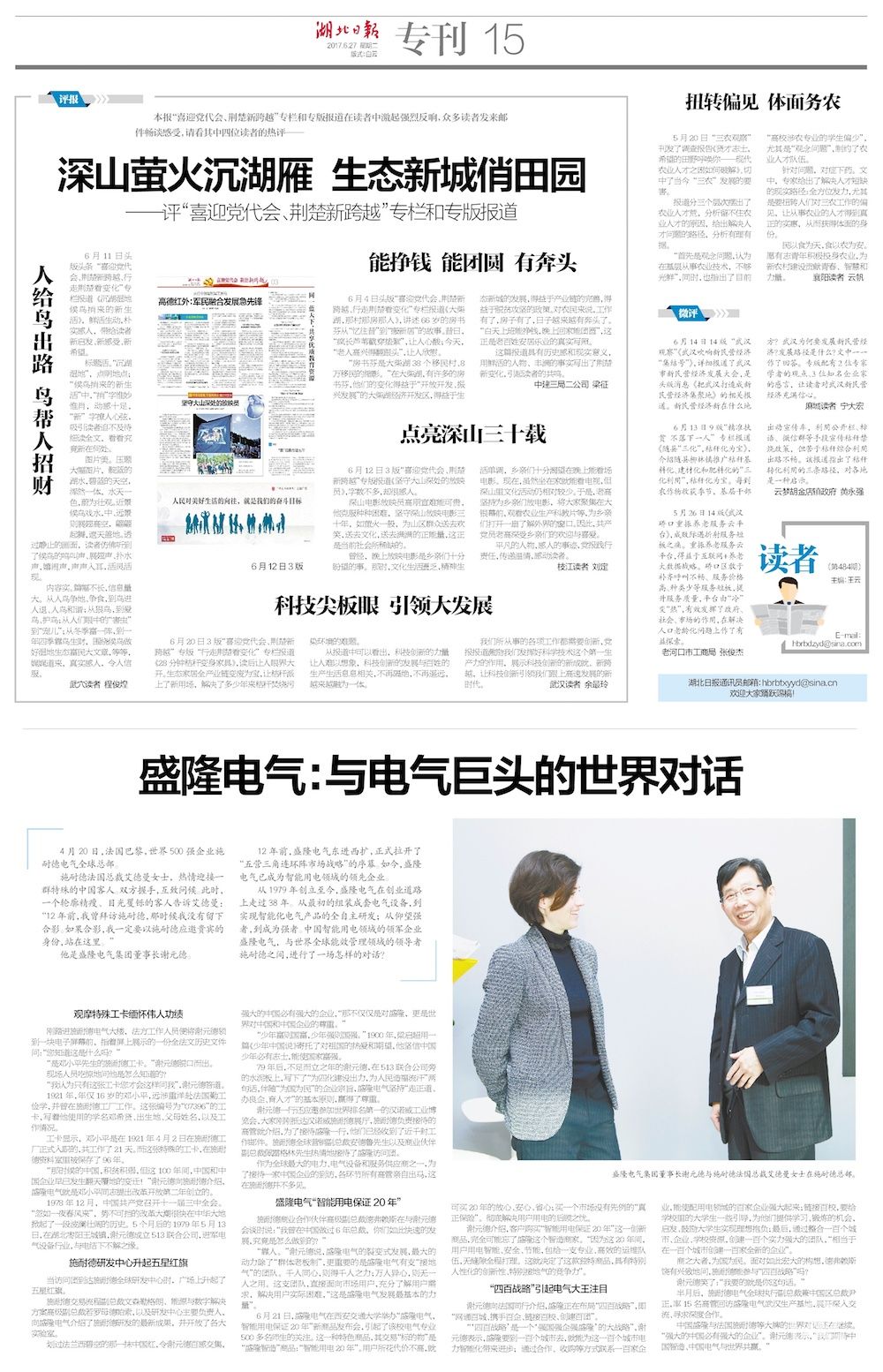 轉自6月27日湖北日報——《盛隆電氣:與世界巨頭的對話》