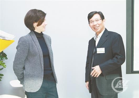 湖北日報訊 圖為盛隆電氣集團董事長謝元德與施耐德法國總裁艾德曼女士在施耐德總部。