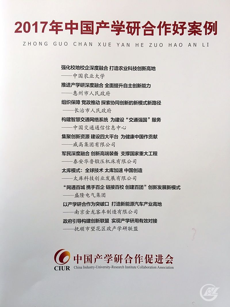 大會頒發(fā)了605項中國產(chǎn)學(xué)研合作創(chuàng)新與促進獎,還發(fā)布了2017年《中國產(chǎn)學(xué)研合作十大好案例》,盛隆電氣集團《“網(wǎng)通百城 攜手百企 鏈接百校 創(chuàng)建百團”創(chuàng)新發(fā)展新模式》被評為《中國產(chǎn)學(xué)研合作十大好案例》之一。中國工程院副院長、中國科協(xié)常委干勇院士為盛隆電氣頒發(fā)了2017年《中國產(chǎn)學(xué)研合作好案例》銅牌。