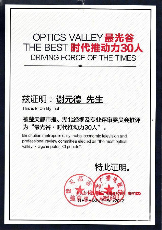 特別貢獻獎:中國光谷國際光電子博覽會暨論壇組委會