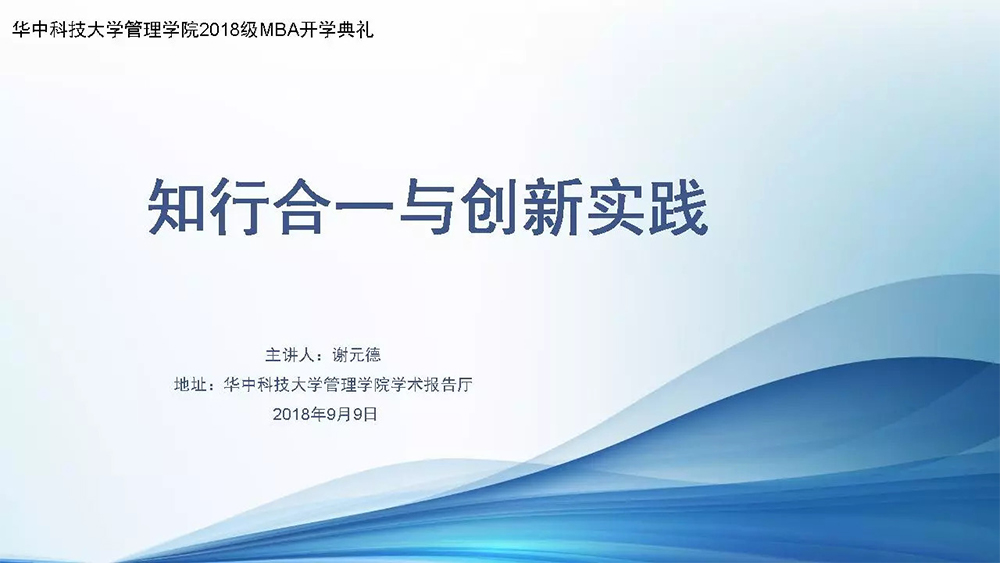 9月9日,華中科技大學管理學院2018級MBA開學典禮暨入學導航在管理學院學術報告廳舉行,盛隆電氣集團董事長謝元德以《知行合一與創新實踐》為主題給學生們授課。
