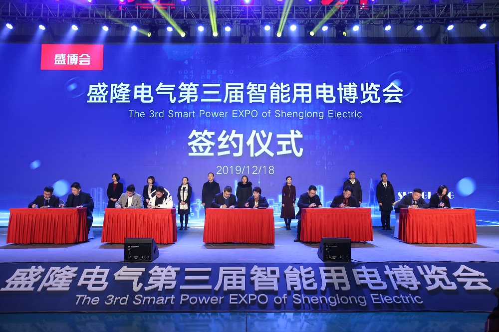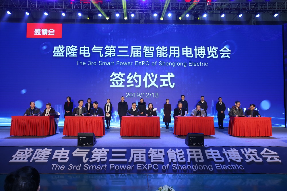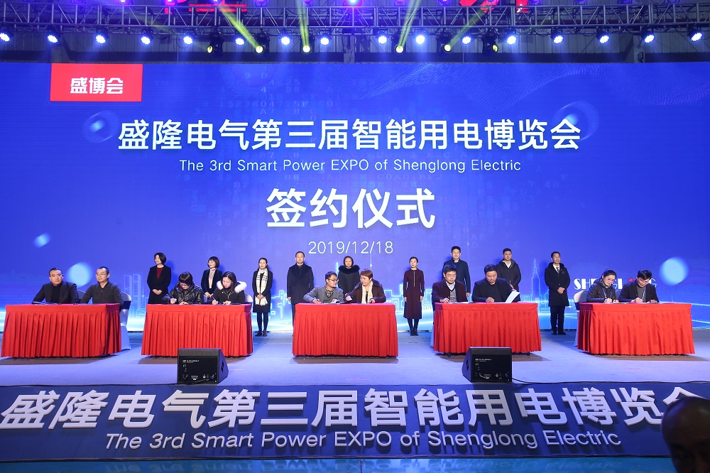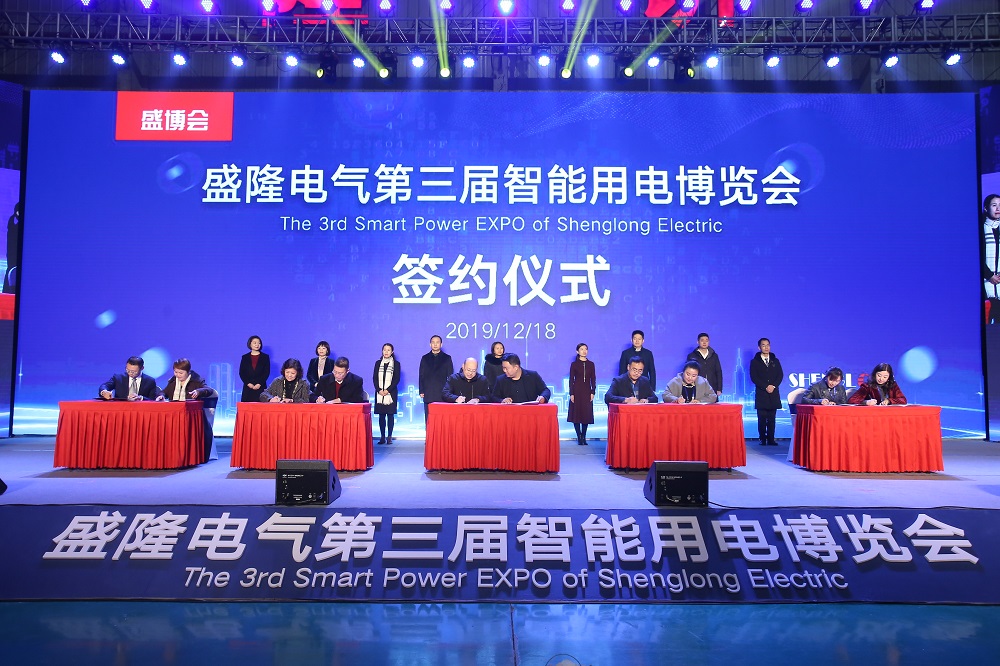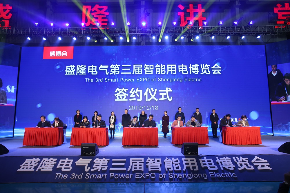 12月18日,盛隆電氣第三屆智能用電博覽會盛大開幕。現場舉行答謝客戶儀式,“盛隆答謝代表團” 上臺,答謝全體客戶,并向十大客戶代表贈送“智能用電保證20年無償技術服務承諾書”。
