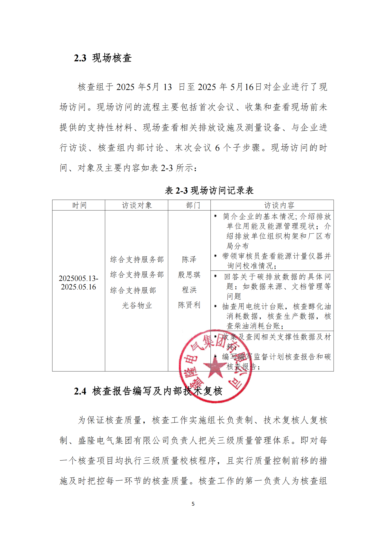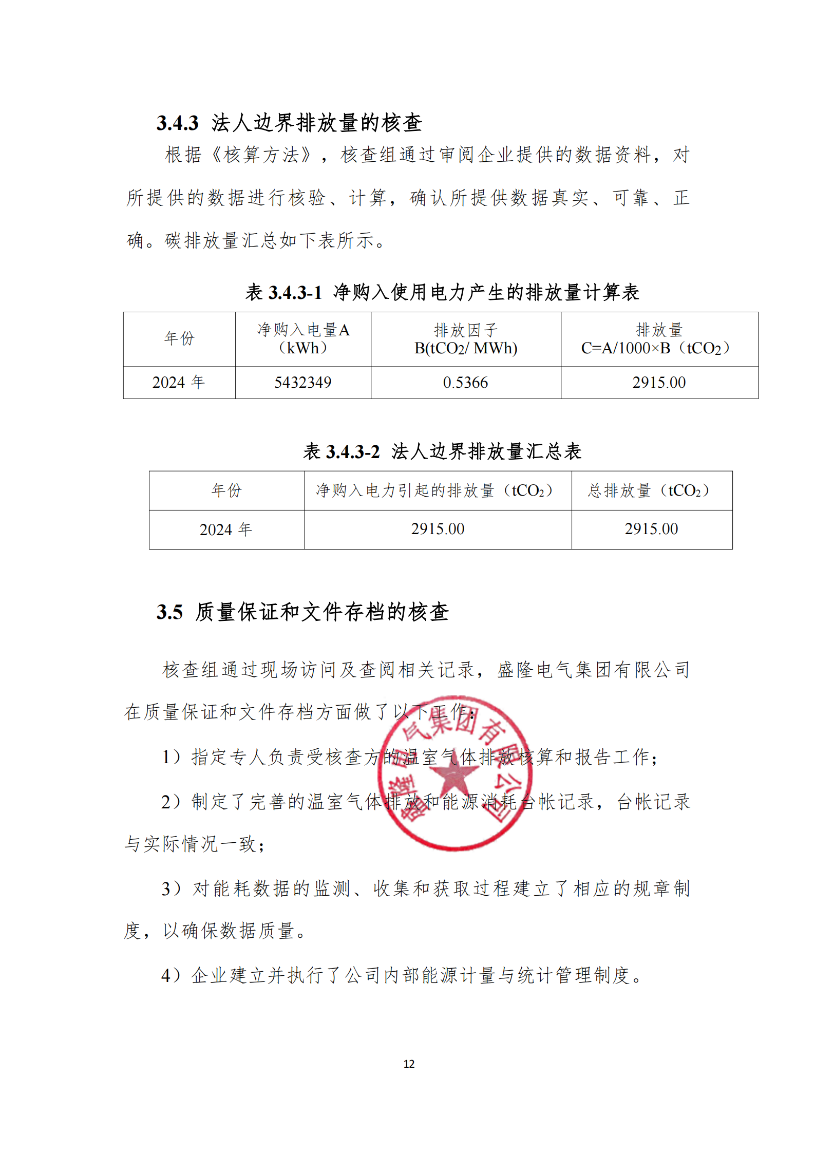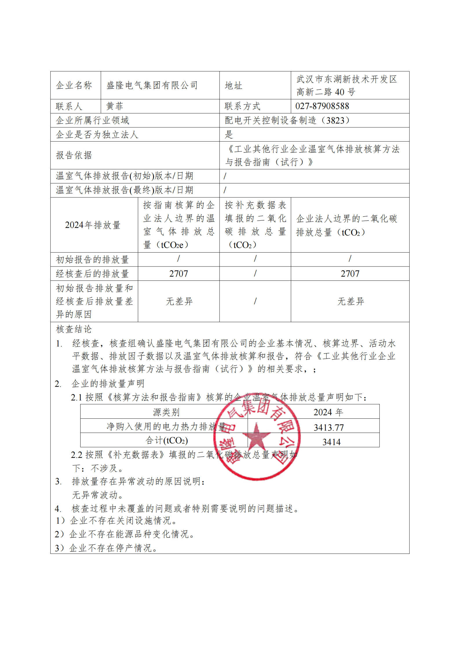盛隆電氣集團有限公司2024年度碳排放自核查報告